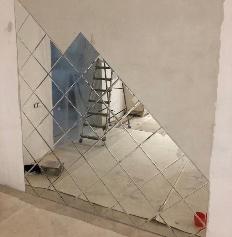 Использована зеркальная квадратная плитка с фацетом.