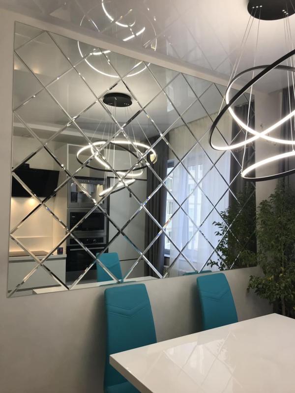 Использована зеркальная плитка "вытянутый ромб" с фацетом.